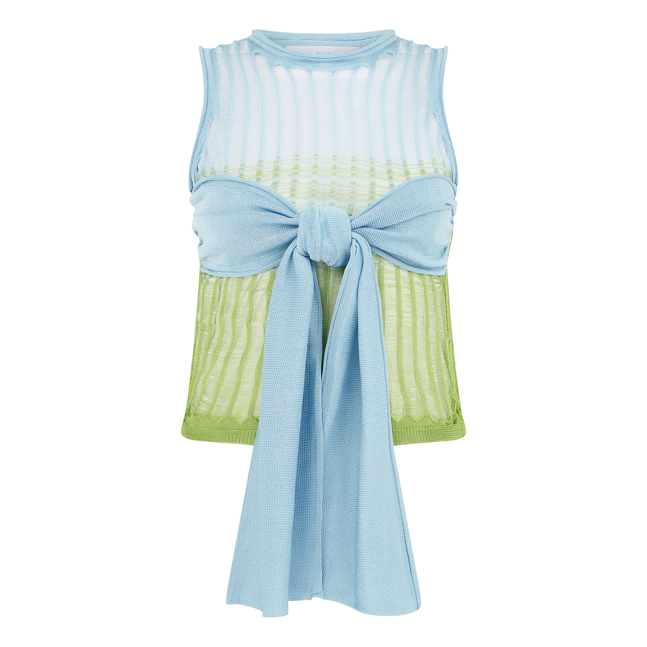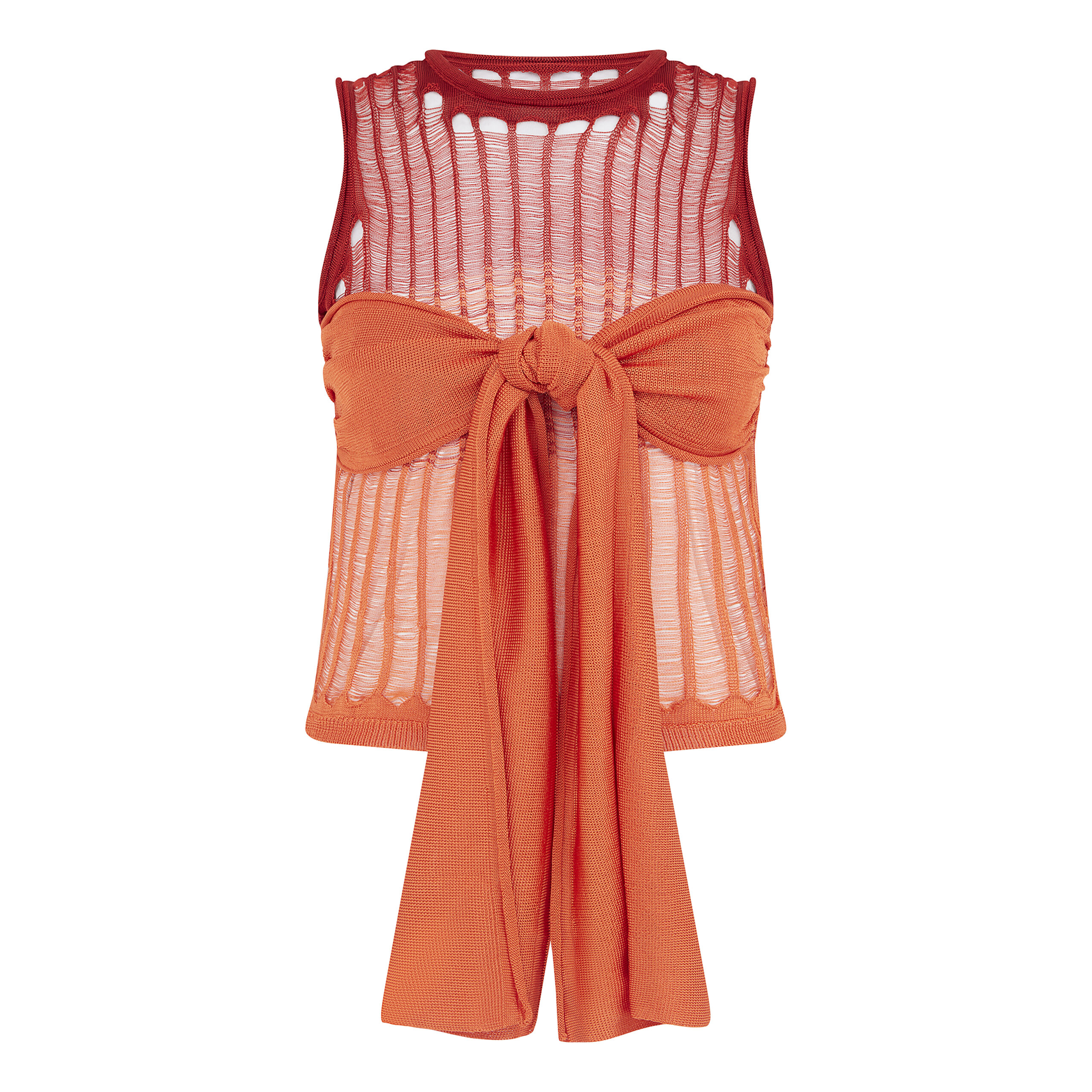 The front tie detail forms an elegant bow, adding a touch of softness to the sleek, body-hugging design. It's a top that combines boldness and sophistication, a must-have for those who dare to stand out. Pair it with “on your way out trousers” for a full look