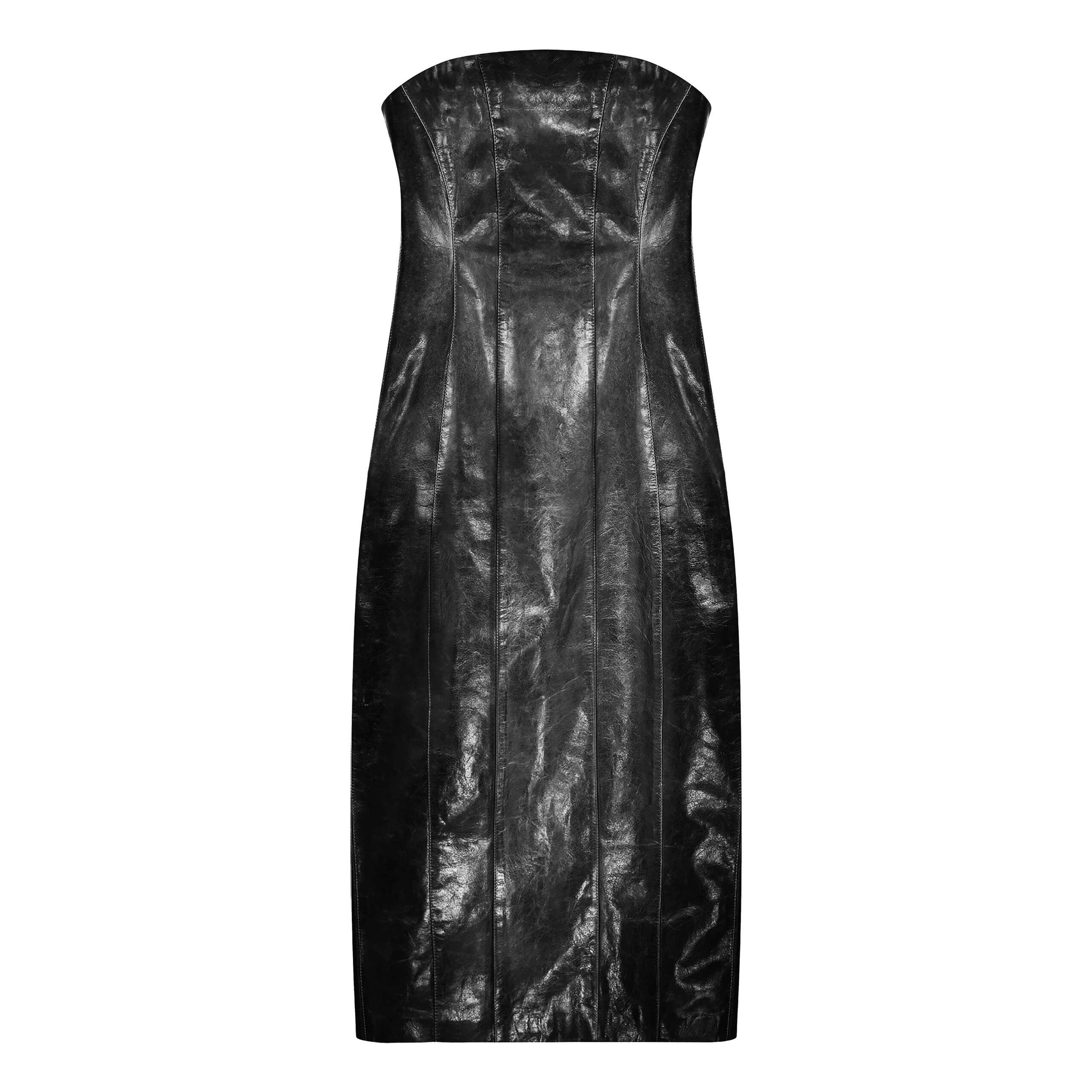 Discover elegance redefined with our exquisite leather midi dress. This piece boasts a dramatic draped back from sliced leather. The front of this strapless dress reveals a minimalist, clean-cut design, ensuring a captivating look from every angle. Style it with statement accessories to embody luxury and grace. Available in Spring Green, Orange or black (please contact us if you’d like a mini-dress version)